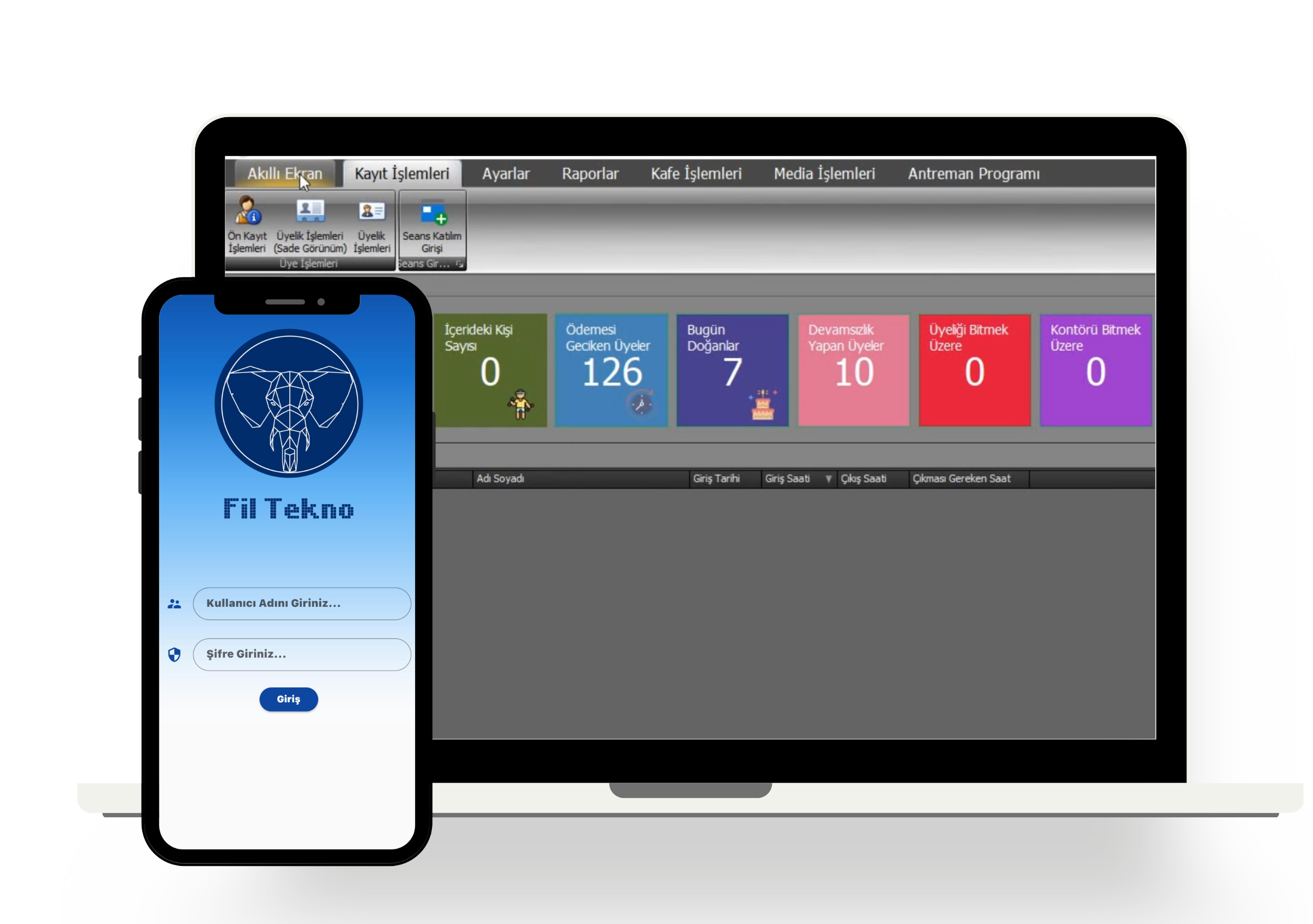 Turnike ve kiosk cihazları ile hem üye , hem personel geçişlerini takip edebilirsiniz.